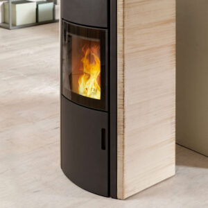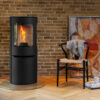 Die gebogene Sichtscheibe gewährt beste Einblicke in den Brennraum. Die Pelletflamme brennt dabei so ruhig, wie bei einem echten Holzfeuer. Mit einer Leistung von 7,5 kW beheizt Polly 2.0 Räume von bis zu 255 m³.