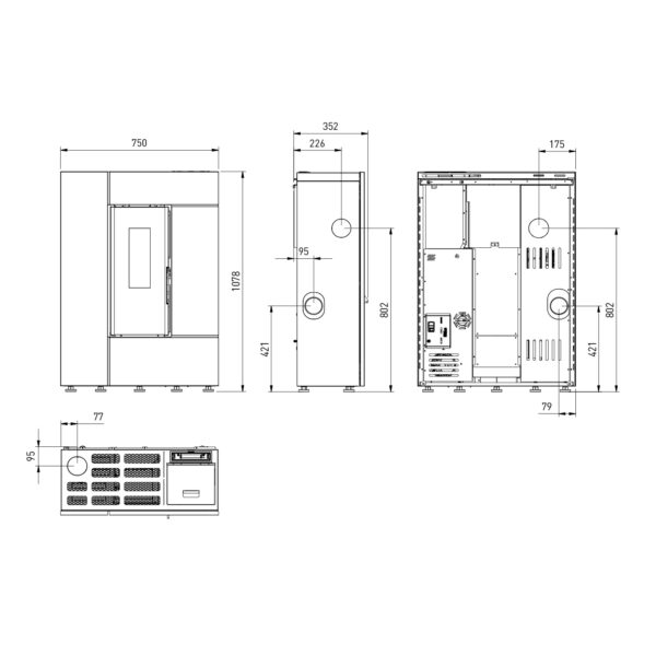 - Maße (H x B x T): 1078 mm x 750 mm x 352 mm