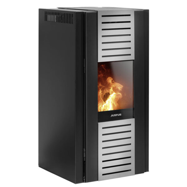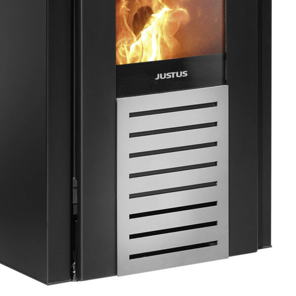 Die hitzebeständige Panoramascheibe des Justus-Pelletofens gewährleistet auch bei höchsten Temperaturen Sicherheit. Damit Sie einen ungetrübten Blick auf das Feuer genießen können, hat der Hersteller den Ofen mit einer Scheibenspülung ausgestattet. Dabei verhindert ein gezielt geführter Luftstrom das Kondensieren und Ablagern von Staubpartikeln und Ruß an der Scheibeninnenseite. Darüber hinaus verfügt das Gerät über eine automatische Brennerschalen-Reinigungsfunktion.
